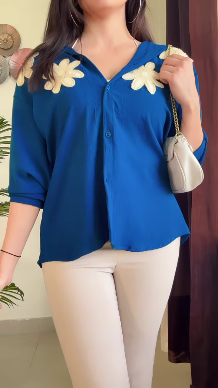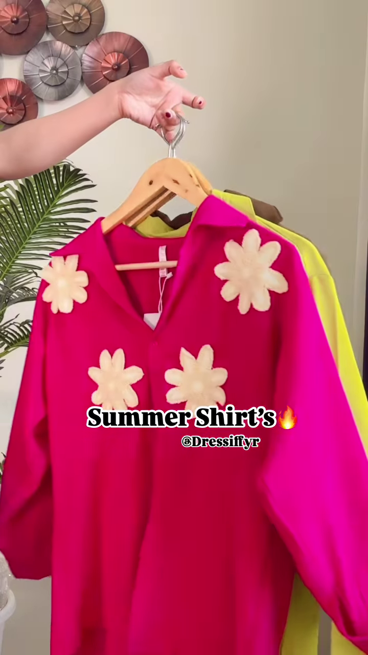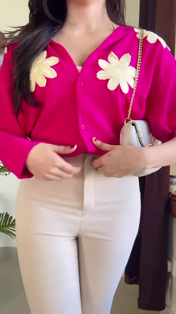 This eye-catching fuchsia kaftan top brings playful sophistication to your summer wardrobe with its bold color palette and charming floral appliqués. The vibrant hot pink fabric serves as the perfect canvas for the delicate cream-colored flower embellishments that add dimension and whimsical appeal to this standout piece.