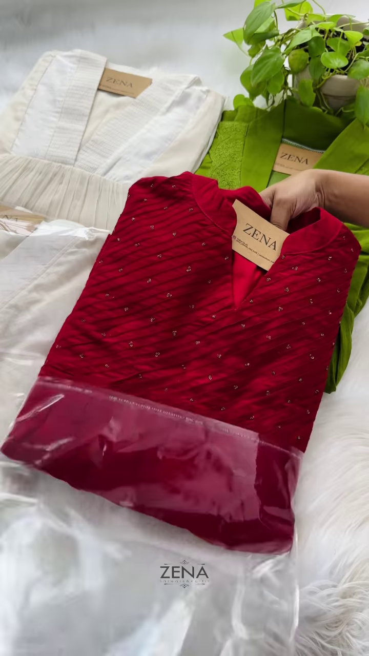 - Deep Red Pleated Pearl Kurti