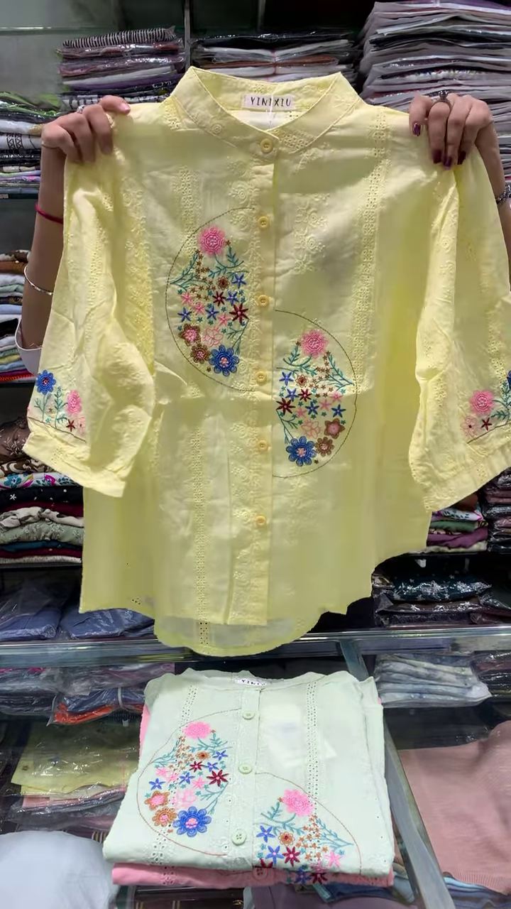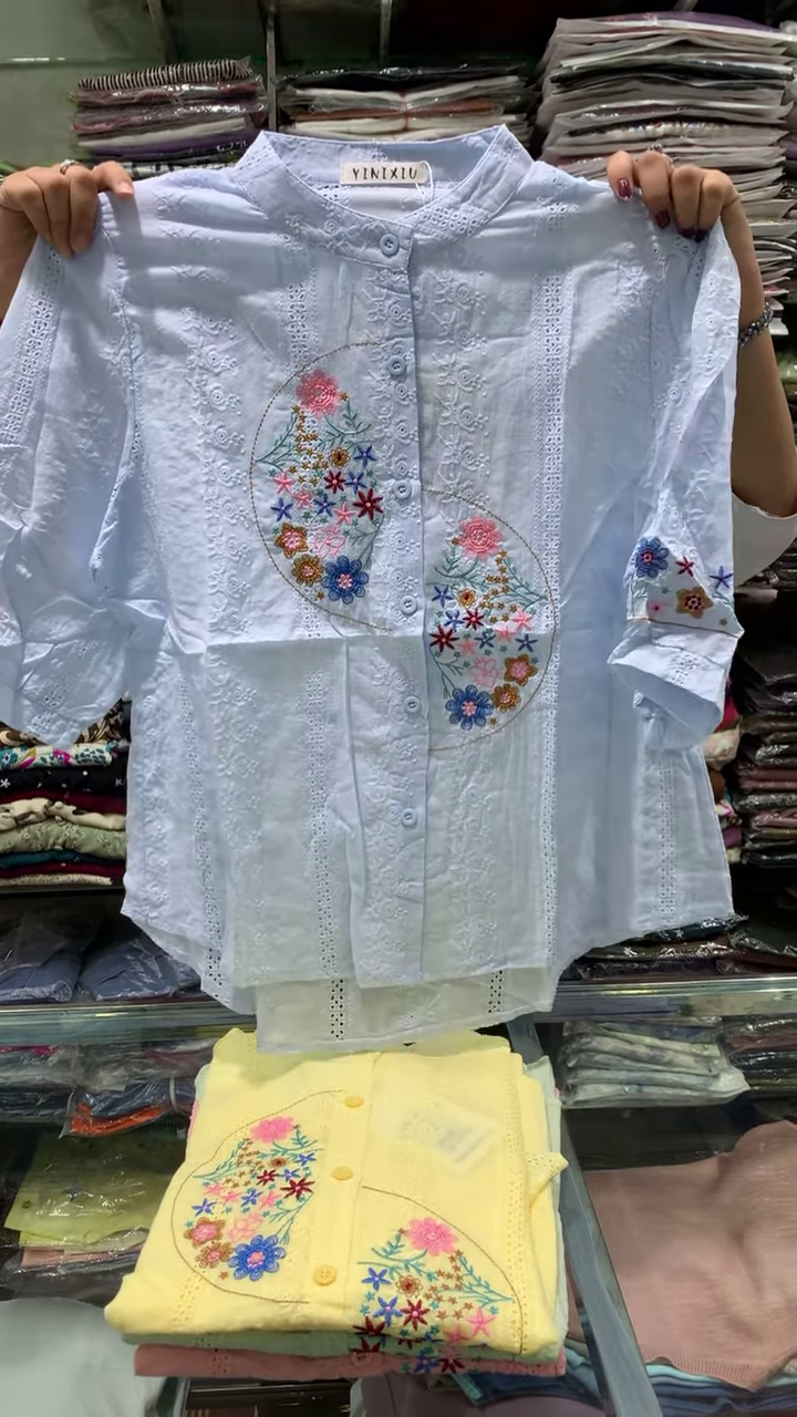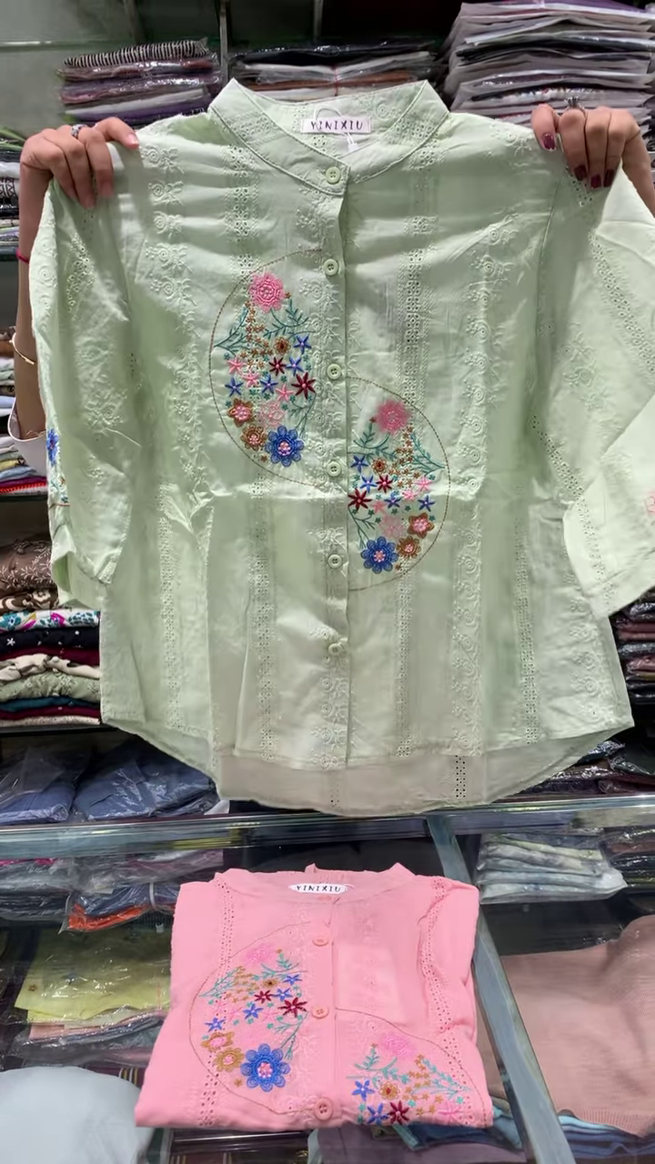 Be the first to review “Ethereal Garden Embroidered Mandarin Collar Blouse”