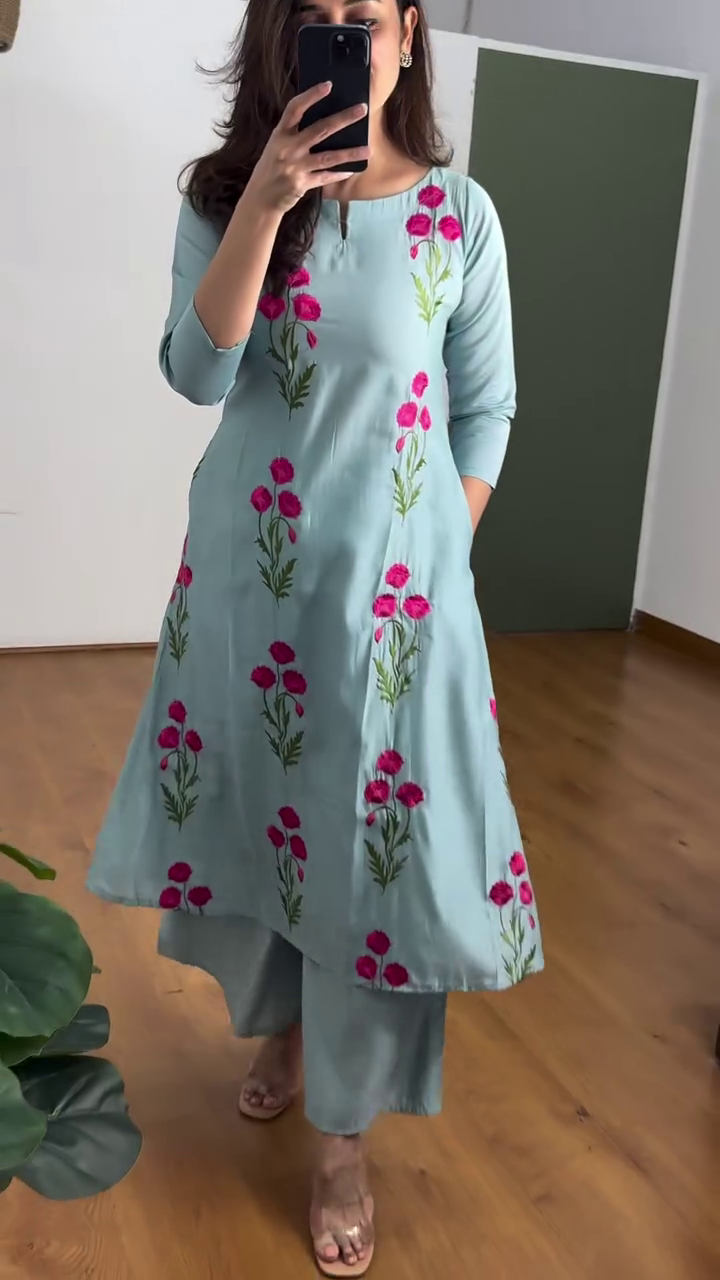 Step into understated elegance with our Floral Charm Embroidered Kurta, a perfect blend of minimalism and handcrafted beauty. Made from smooth, breathable fabric, this kurta features delicate vibrant floral embroidery in bold pink tones that stand out against a soft pastel baseβideal for both everyday wear and special daytime outings.